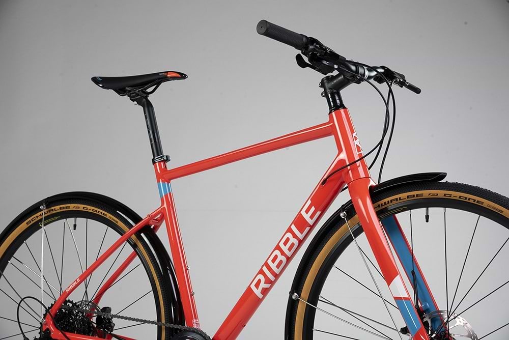 LEVEL Urban alloy riser handlebars neatly matched with a LEVEL Gravel alloy stem offer a comfortably relaxed riding position with improved stability and control when a ride takes you off the beaten path. A LEVEL 1 alloy seat post comes fitted with an ergonomic Prologo Kappa RS saddle, which in combination with the LEVEL lock-on bar grips provide additional comfort in the contact areas. Completing this all-road package is a set of Ribble full coverage mudguards to help keep the worst of the weather conditions at bay.
