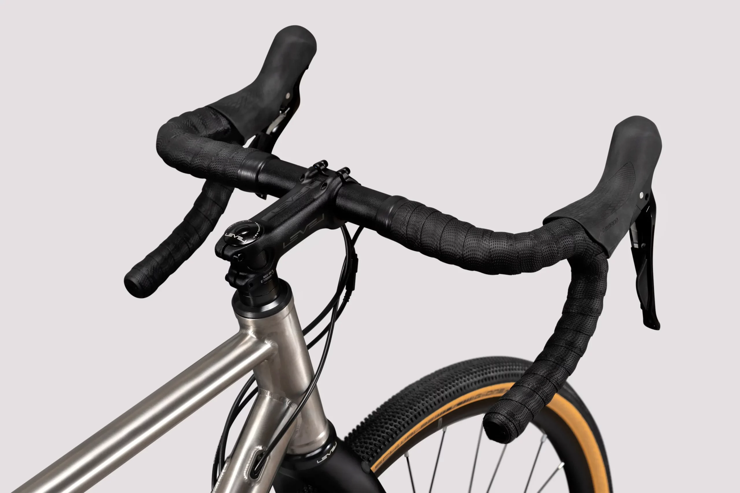 LEVEL alloy handlebars offer a shorter drop and reach, providing swift transitions from the tops and hoods to the drops with minimal change of position. Their ergonomic design ensures almost any cyclist can find their optimal ride position for enhanced comfort on rides of any distance. Wrapped in a comfortable LEVEL bar tape and neatly matched with a LEVEL alloy handlebar stem.