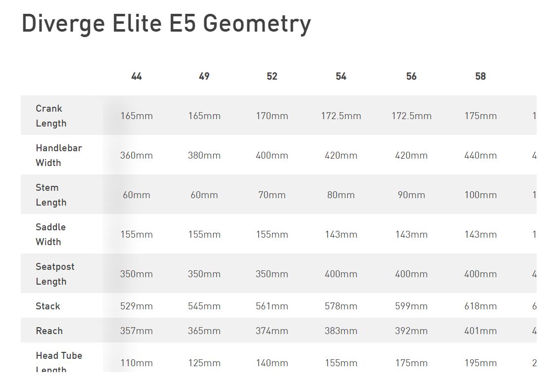 Diverge Elite E5 Technical Specifications
